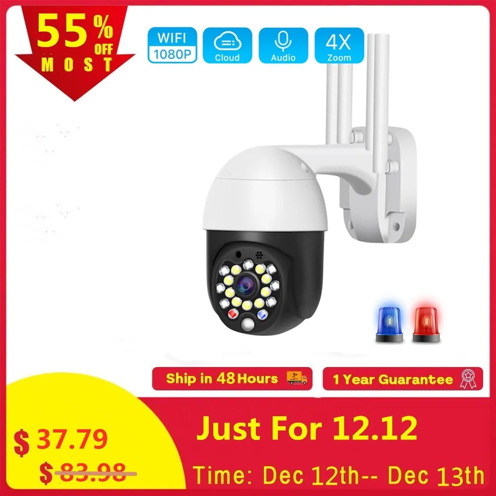 Special Offer 1080P Cloud Wifi PTZ Camera Outdoor 2MP Auto Tracking Home Security IP Camera 4X Digital Zoom Speed Dome Camera with Siren Light Discount 54% Today!
