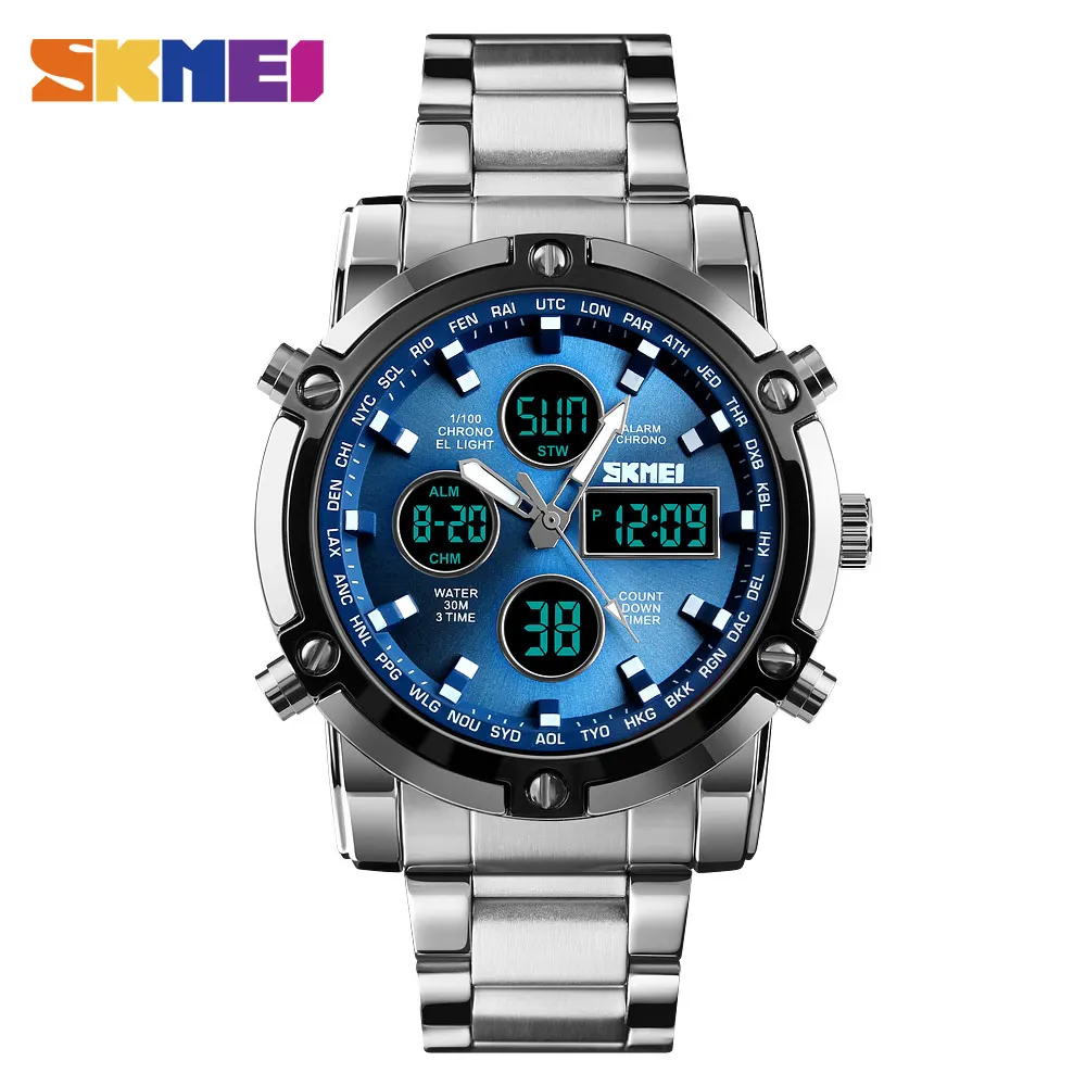 Special Offer SKMEI Men s Quartz Watch Luxury Sport Digital Wristwatch Waterproof Stainless Steel Male Watches Clock Relogio Masculino 1389 Discount 54% Today!