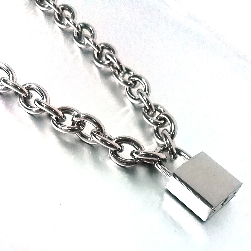 Special Offer Handmade Men Women Unisex Chain Necklace Heavy Duty Square Lock Padlock Choker Metal Collar Discount 10% Today!