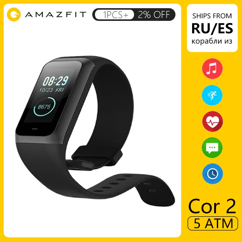 Best . (20% Off) Buy Amazfit Band Cor 2 Smart watch 5ATM Waterproof 2.5D Color Stainless Steel Frame For Android IOS Huami smartwatch Bracelet Cheap Online.
