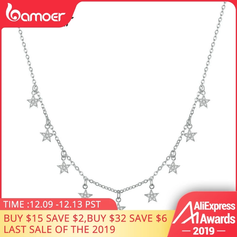 Best . (45% Off) Buy bamoer Stars Metal Choker Necklaces for Women Short Chain Necklaces Wedding Engagement 925 Sterling Silver Jewelry BSN116 Cheap Online.