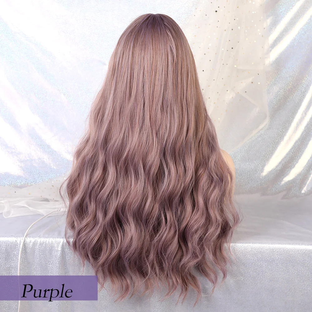Special Offer Blonde Unicorn Long Mix Purple Womens Wigs with Bangs Water Wave Heat Resistant Synthetic Wigs for Women African American Discount 48% Today!