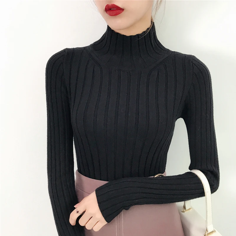 Special Offer 2019 White turtleneck sweater and semi small fresh female short thick slim tight long sleeved all match knitted shirt Discount 53% Today!