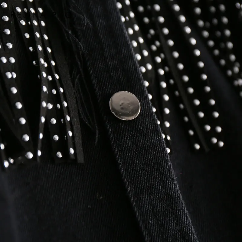 Best . (58% Off) Buy REJINAPYO Women Black High Quality Loose Denim Jacket Coat Sequined Tassels Streetwear All match Mental Covered Button Outerwear Price Online.
