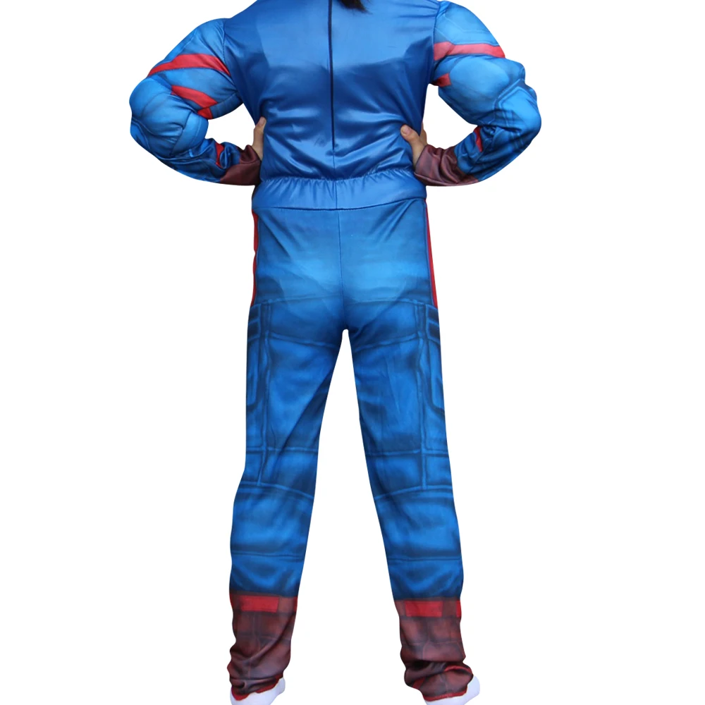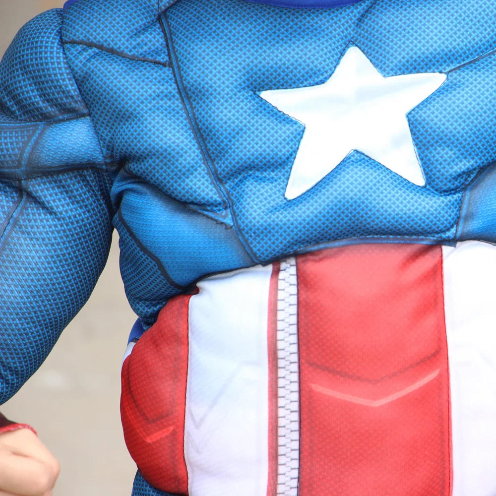 Special Offer Christmas Carnival Superhero Kids Muscle jumpsuits mask cape shield Captain America mask Cosplay Costumes For Boys Girls dress Discount 27% Today!