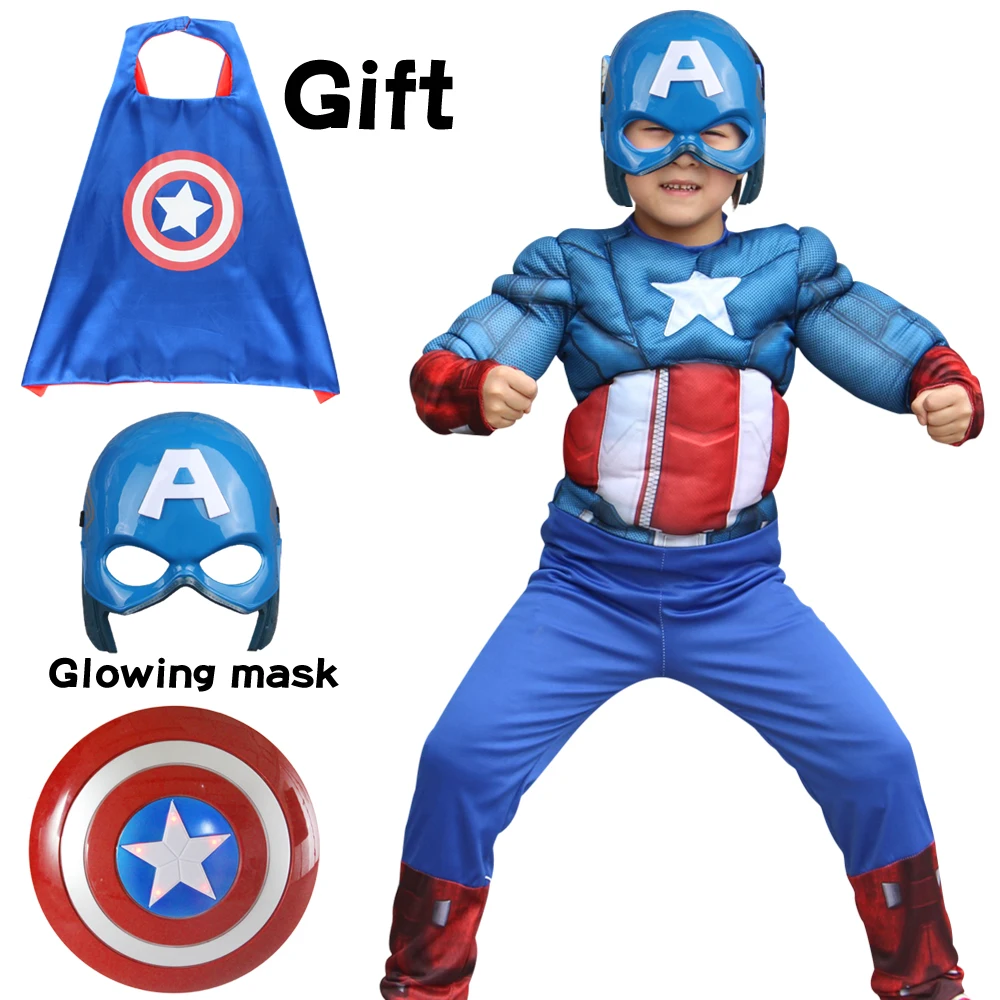 Best . (27% Off) Buy Christmas Carnival Superhero Kids Muscle jumpsuits mask cape shield Captain America mask Cosplay Costumes For Boys Girls dress Price Online.
