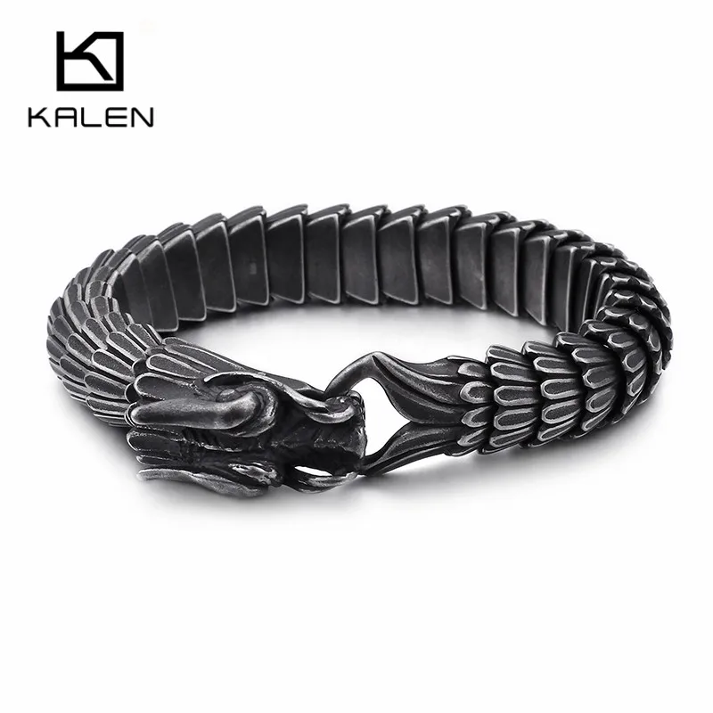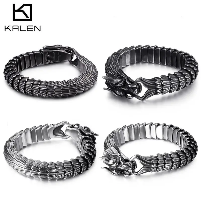 Best . (30% Off) Buy KALEN Punk Animal Dragon Head Charm Bracelet Men Stainless Steel Black Matte China Dragon Blessing Bracelet Bangle Jewelry Cheap Online.