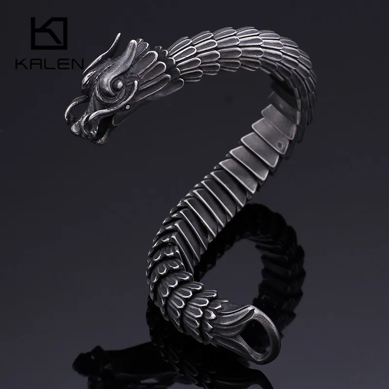Special Offer KALEN Punk Animal Dragon Head Charm Bracelet Men Stainless Steel Black Matte China Dragon Blessing Bracelet Bangle Jewelry Discount 30% Today!