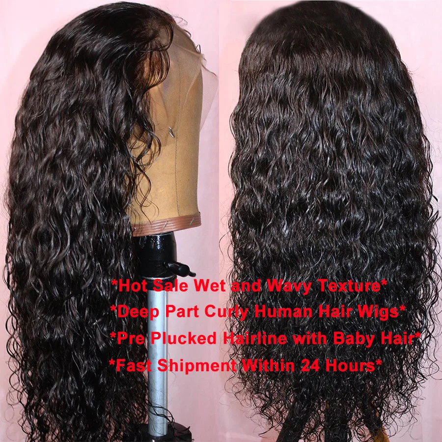 Special Offer Deep Part Curly Human Hair Wigs 13*6 Wet and Wavy Lace Front Wigs Brazilian Lace Frontal Wig Remy Hair Pre Plucked Bleached Knot Discount 48% Today!