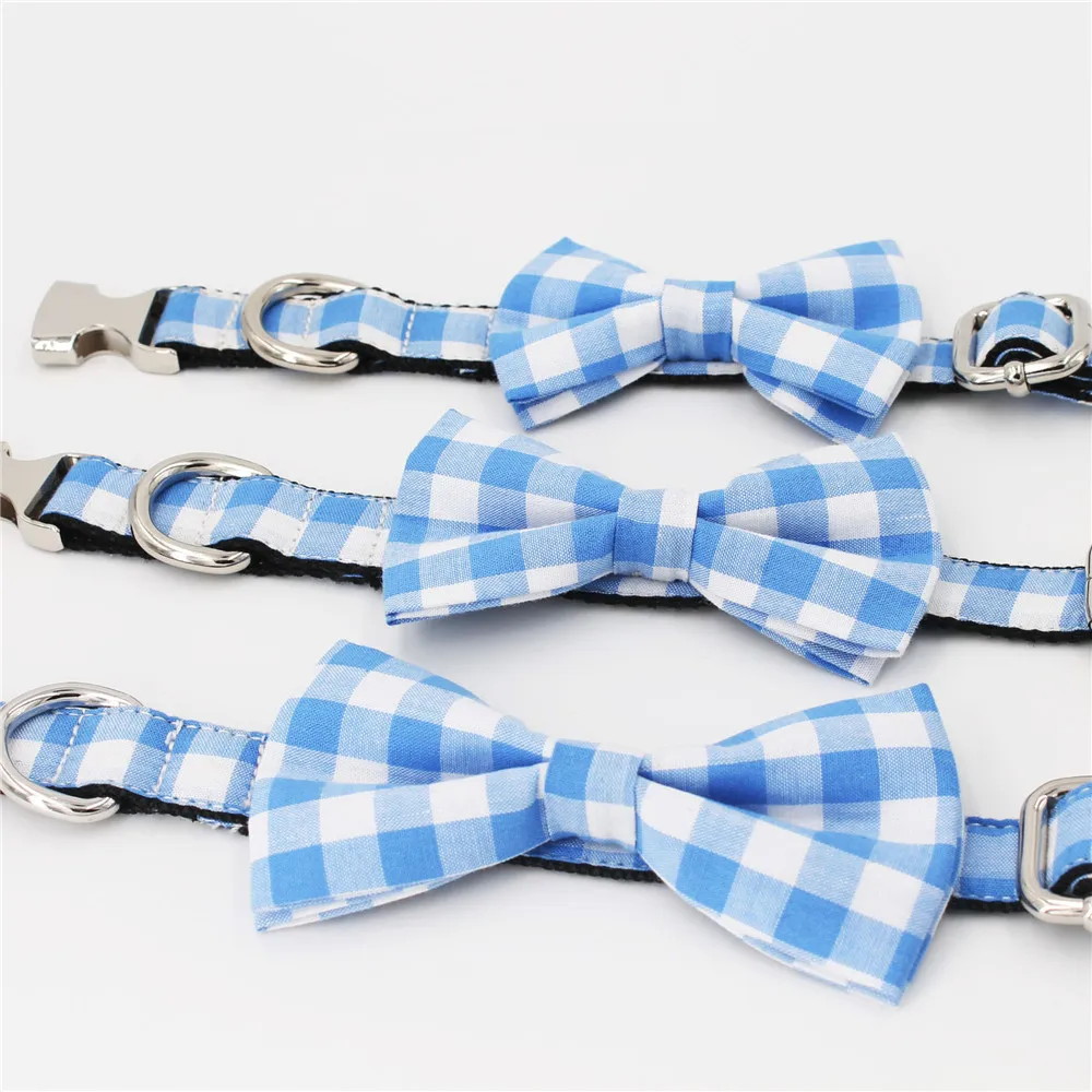 Best . (6% Off) Buy Blue dog collar set with bow tie handmade personal custom pet pupply dog cat necklace XS XL Cheap Online.