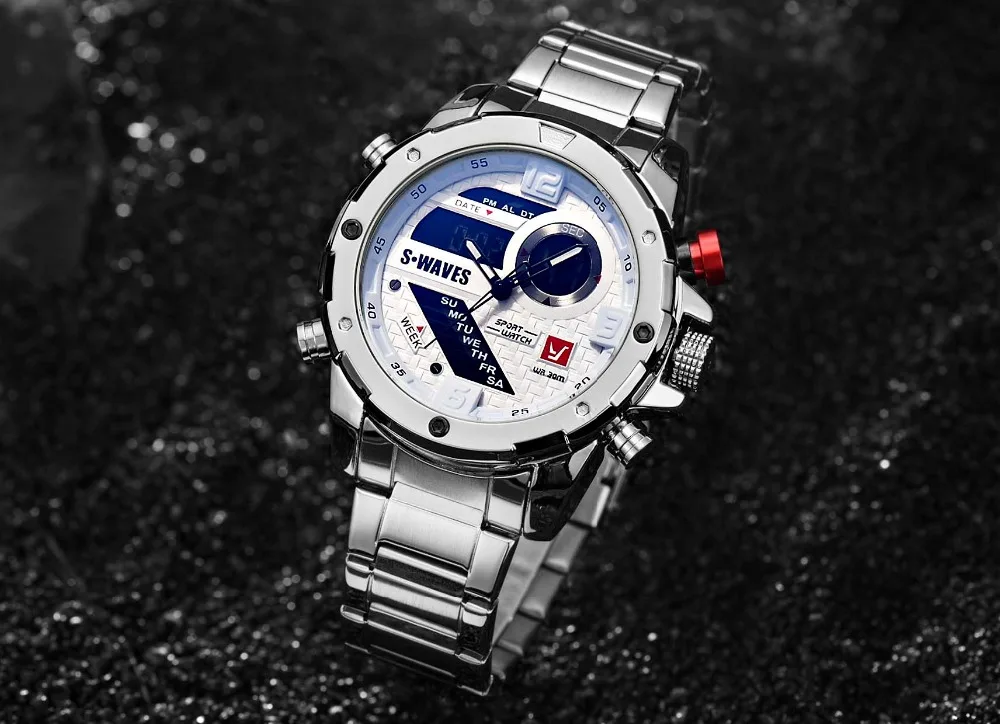 Special Offer SWAVES Brand Dual Display Watches Men Wach Quartz Sport Waterproof Digital Watch Big Clock Stainless Steel Relogio Masculino Discount 60% Today!
